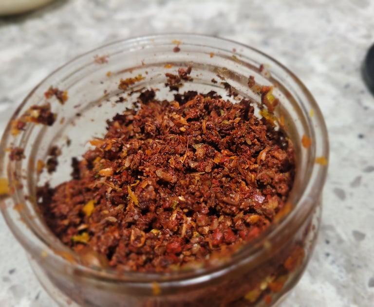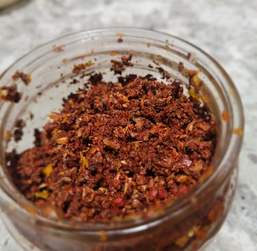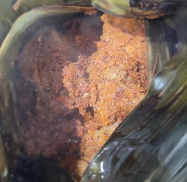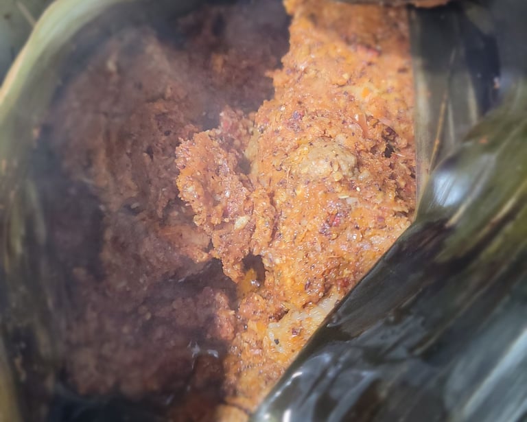And now for the food. Yucatecan food is quite different from the rest of Mexico's and is heavily Maya-influenced helped by an abundance of local produce; it is especially known for its liberal use of the fiery habanero chile. I made the famous Cochinita Pibil - so named for the way the pork is cooked in the ground (known as 'pib'). Pork is marinated in a rich spice mixture (known as 'recado', pictured, and citrus juices) and then roasted in banana leafs and served over tortillas. The marinade and banana leaf impart a distinctly tropical taste - and much of it can't be replicated outside of Yucatán where the minerals in the soil and smokiness of local vegetation contribute to its unique taste.