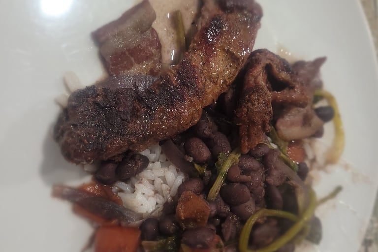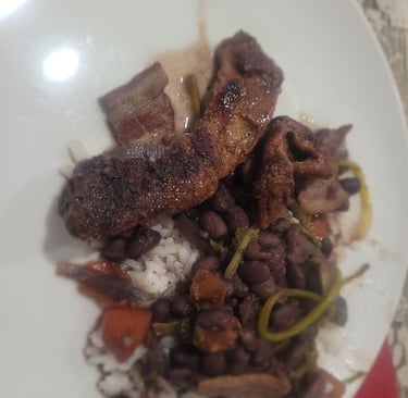 Now for the food. The northern tier of Mexico, including NL is beef country and barbecuing is a big part of norteño culture and gastronomy. I made 'frijoles borrachos' (drunken beans) - so named for beans cooked in beer (along with onion, garlic, chile, bacon, tomato and cilantro). That goes alongside the famous 'carne asada' - steak marinated in citrus and grilled. In the north, wheat is more prevalent than corn, and so wheat tortillas are more common, and like elsewhere is an efficient delivery vehicle for just about any food - including beans and steak. I had mine over rice.